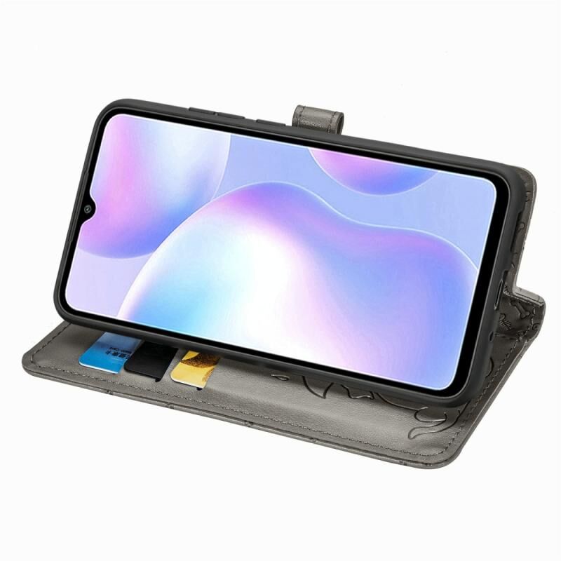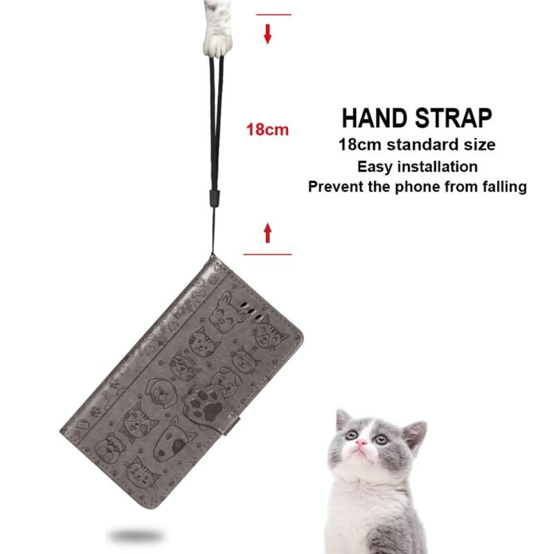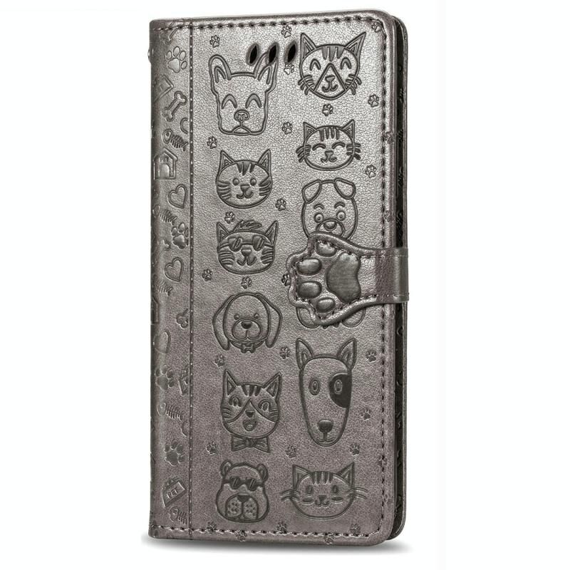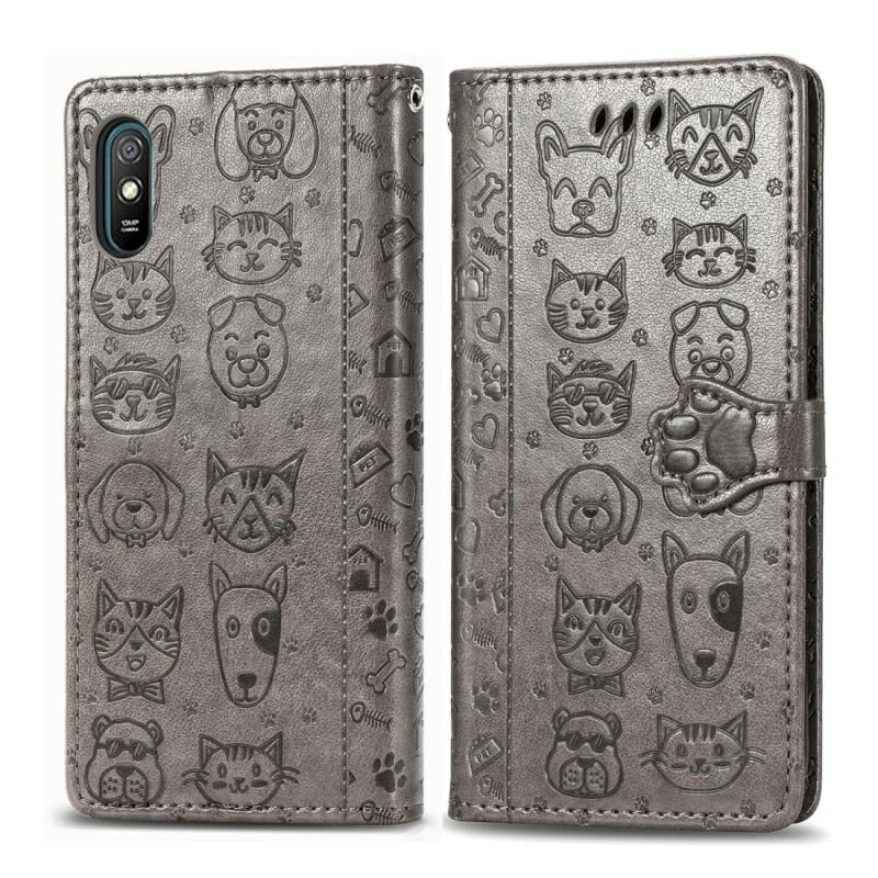 Για Xiaomi Redmi 9A Χαριτωμένη γάτα και σκύλος ανάγλυφη οριζόντια Flip δερμάτινη θήκη με θήκη & υποδοχές καρτών & πορτοφόλι & κορδόνι (Γκρι)