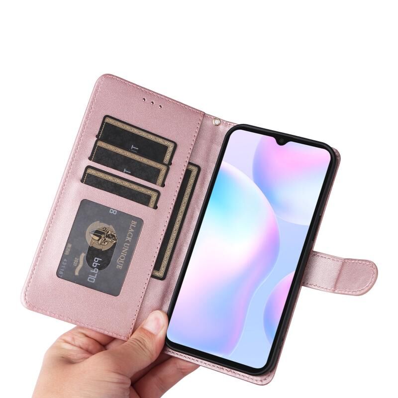 Για Xiaomi Redmi 9a Diamond Lattice δερμάτινη θήκη Flip Phone Case (Rose Gold)