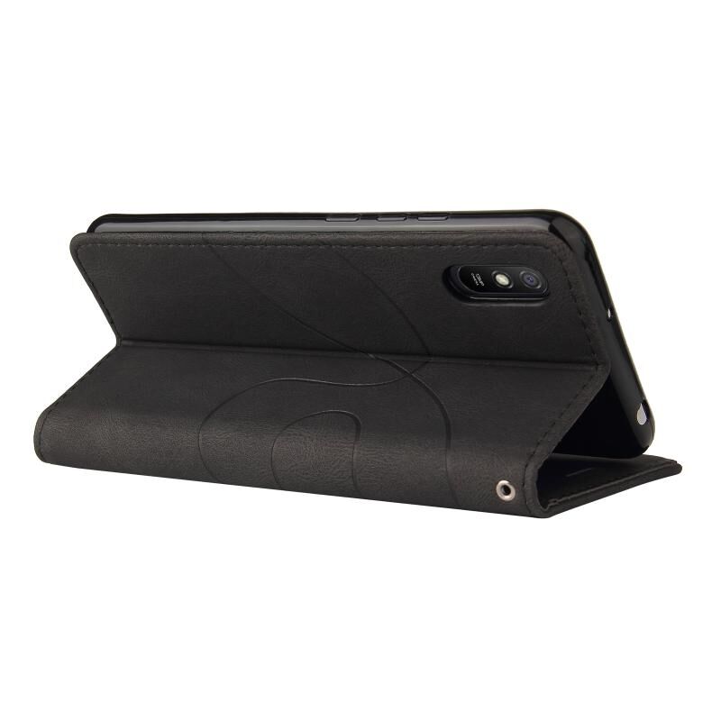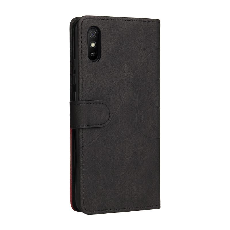 Για Xiaomi Redmi 9A Διπλό χρώμα Splicing οριζόντια Flip PU δέρμα υπόθεση με θήκη & υποδοχές καρτών & πορτοφόλι (μαύρο)