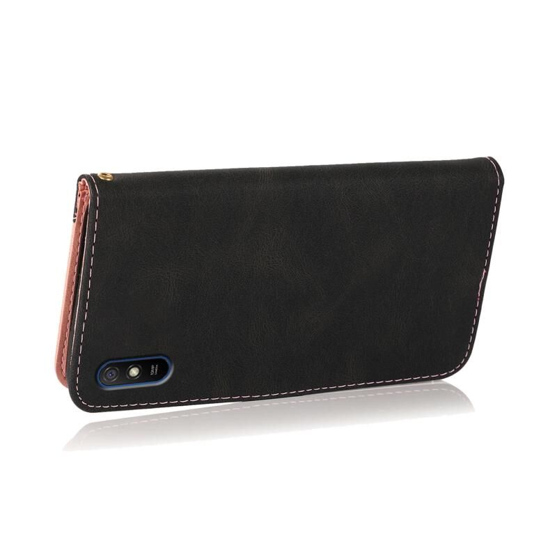 Για Xiaomi Redmi 9A Διπλό χρώμα ραφή δερμάτινη θήκη τηλεφώνου (μαύρο ροζ χρυσό)