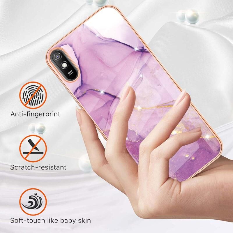 Θήκη για Xiaomi Redmi 9A με επιμετάλλωση, σχέδιο μαρμάρου, διπλής όψης IMD TPU αντικραδασμική (Μωβ 001)