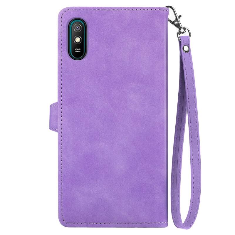 Για Xiaomi Redmi 9A ανάγλυφο λουλούδι φερμουάρ δερμάτινη θήκη τηλεφώνου (μωβ)