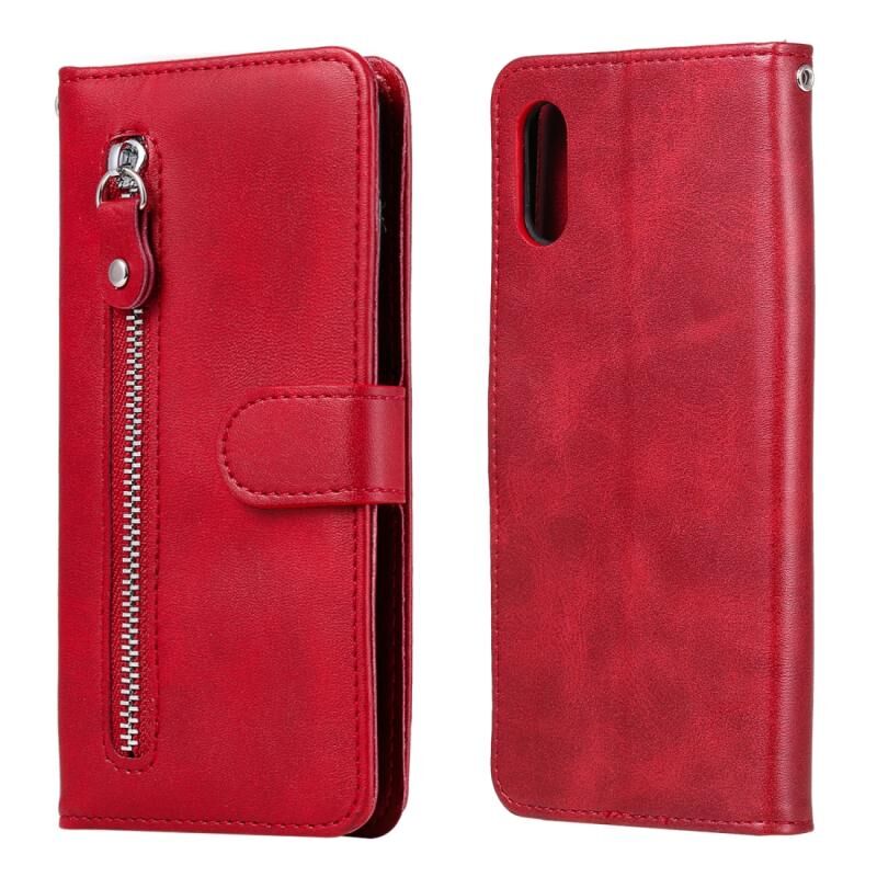 Για Xiaomi Redmi 9A Μόδα μοσχάρι υφή φερμουάρ οριζόντια Flip δερμάτινη θήκη με Stand & υποδοχές για κάρτες & λειτουργία πορτοφόλι (Κόκκινο)