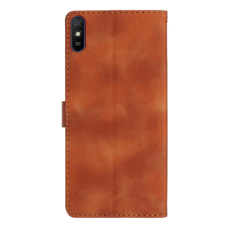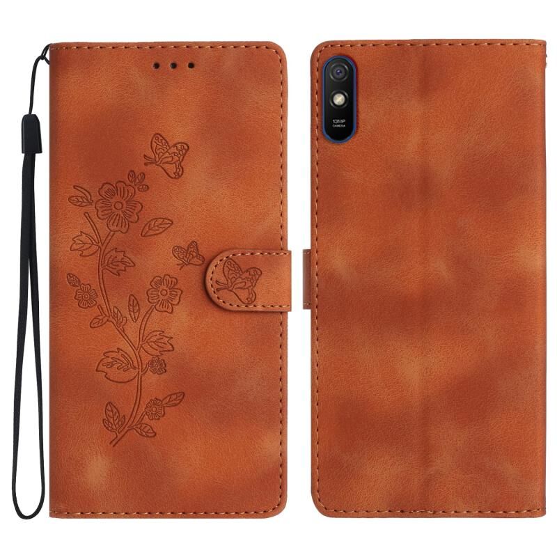 Για Xiaomi Redmi 9A λουλούδι πεταλούδα ανάγλυφο μοτίβο δερμάτινη θήκη τηλεφώνου (καφέ)