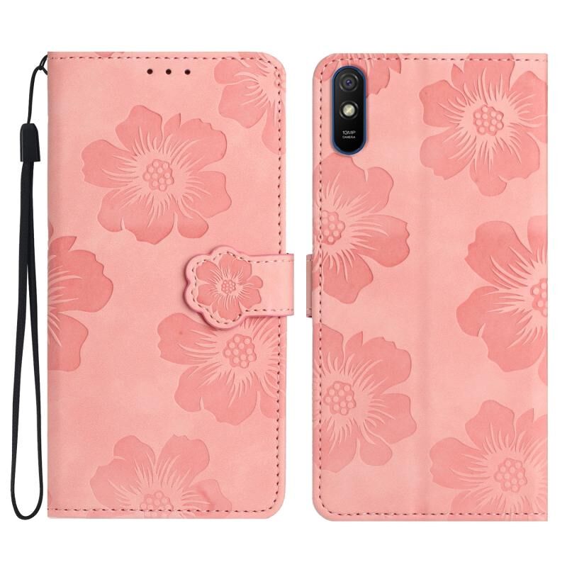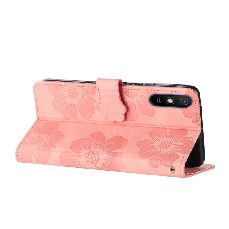 Για Xiaomi Redmi 9A λουλούδι ανάγλυφο μοτίβο δερμάτινη θήκη τηλεφώνου (ροζ)