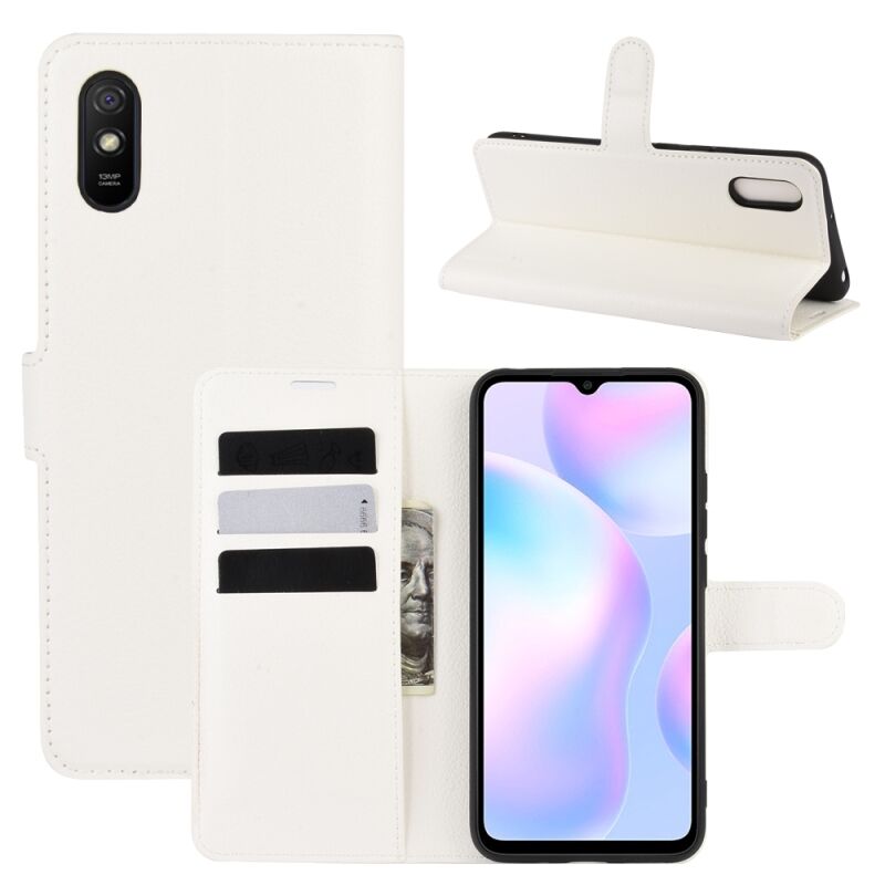Για Xiaomi Redmi 9A Litchi υφή οριζόντια Flip προστατευτική θήκη με υποδοχή & υποδοχές για κάρτες & πορτοφόλι (λευκό)