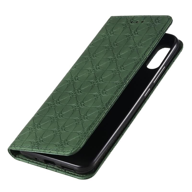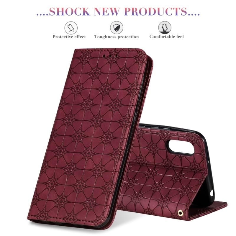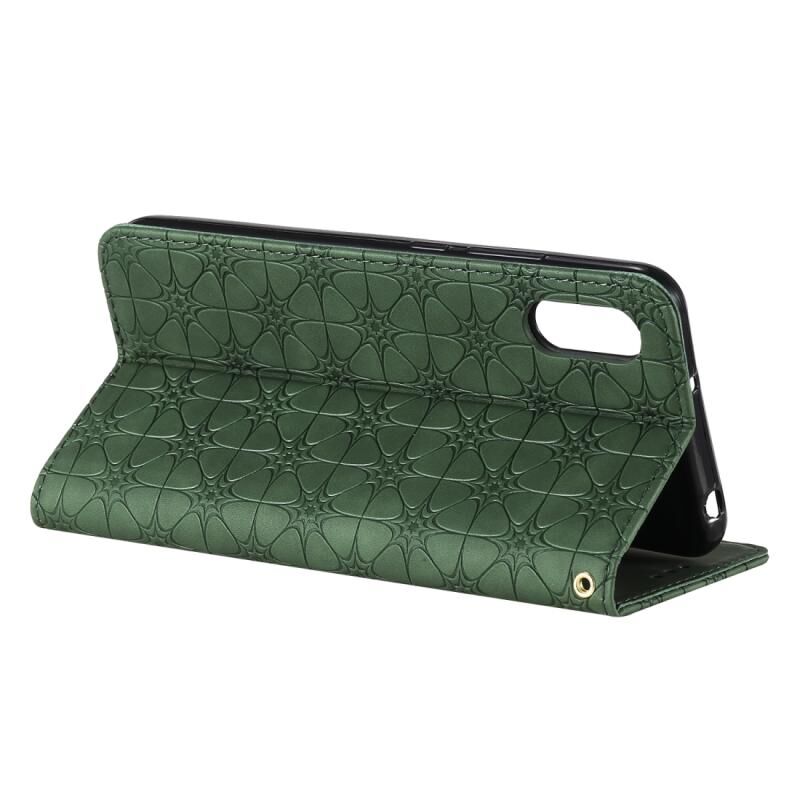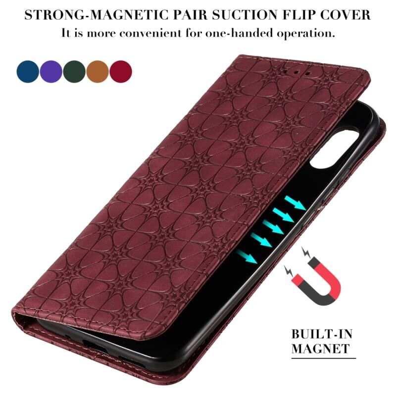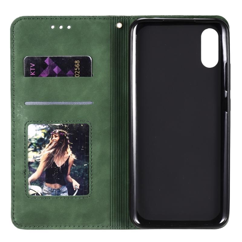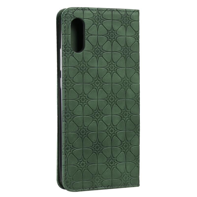 Θήκη δέρματος Xiaomi Redmi 9A με μαγνητικό κλείσιμο, σχέδιο ανάγλυφων λουλουδιών, οριζόντια, με βάση στήριξης & θήκες για κάρτες (Σκούρο Μπλε)