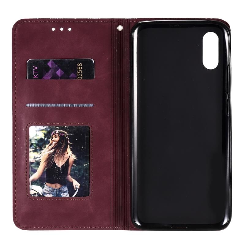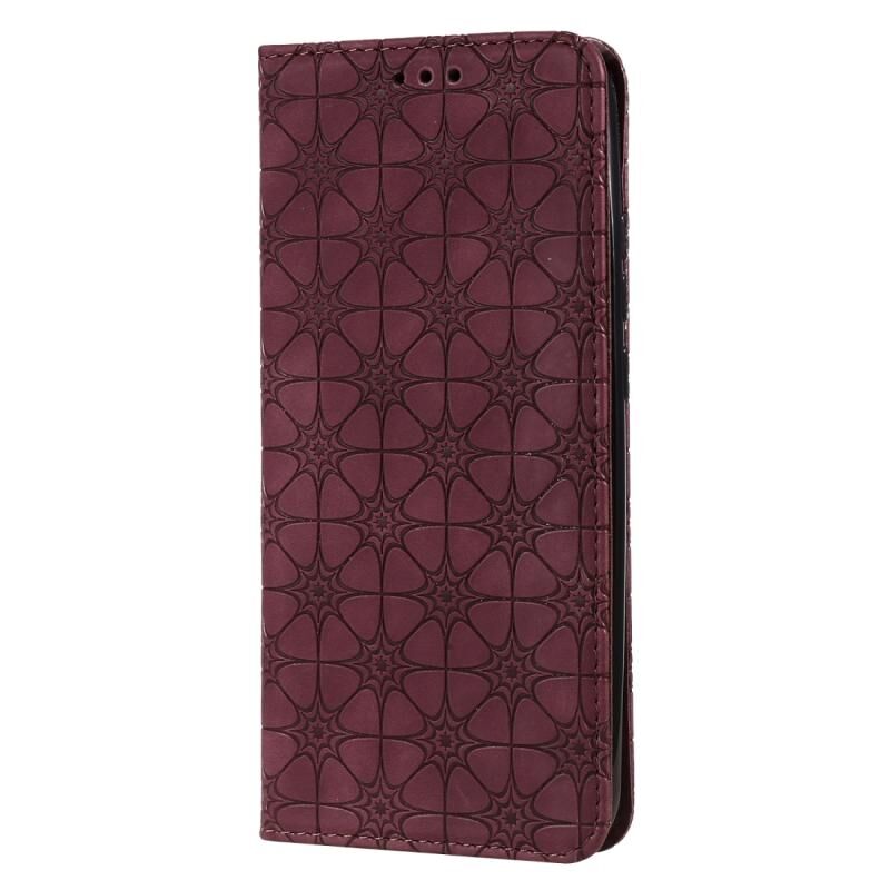 For Xiaomi Redmi 9A Lucky Flowers Embossing Pattern Magnetic Horizontal Flip Leather Case with Holder & Card Slots(Wine Red)