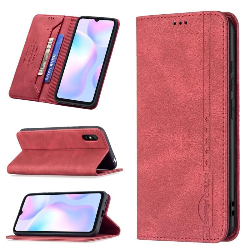 Για Xiaomi Redmi 9A Μαγνητικό RFID Blocking Anti-Theft Δερμάτινη θήκη με κάτοχο & υποδοχές καρτών & πορτοφόλι (κόκκινο)