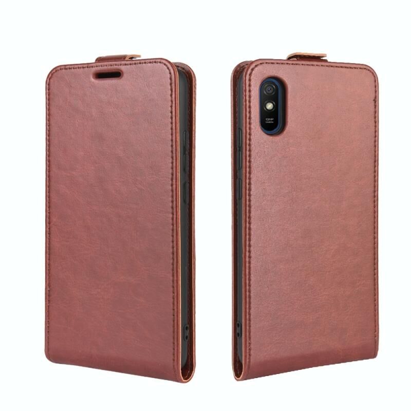 Για Xiaomi Redmi 9A R64 Υφή ενιαία κάθετη Flip δέρμα προστατευτική θήκη με υποδοχές για κάρτες & πλαίσιο φωτογραφιών (καφέ)