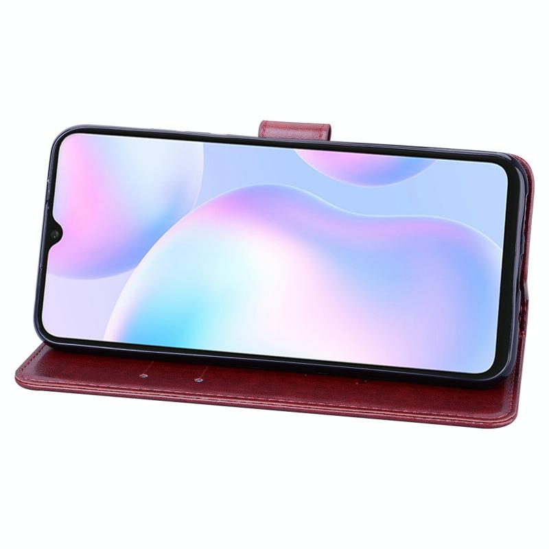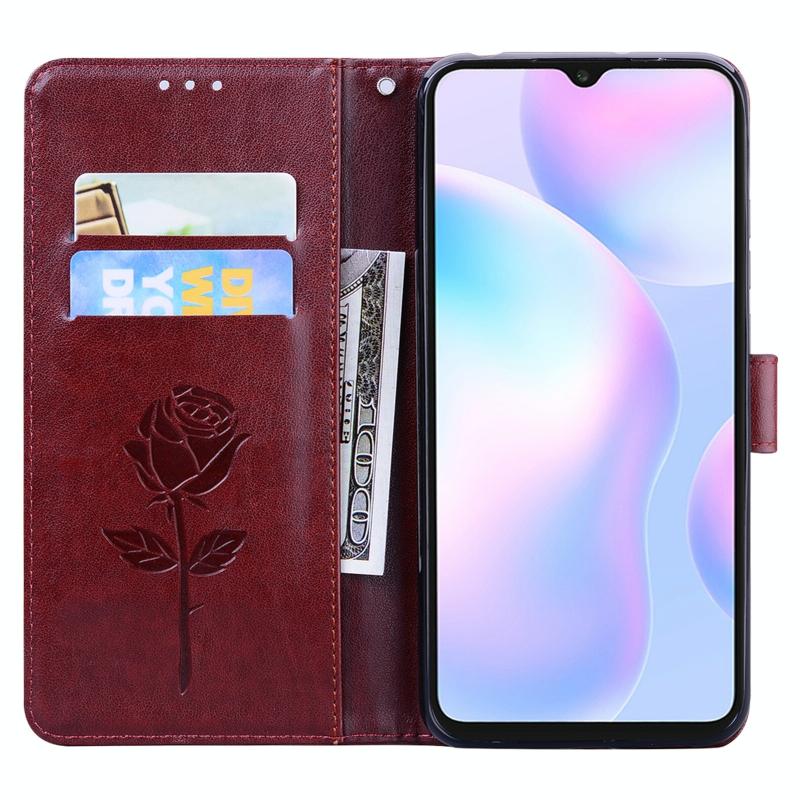 Θήκη για Xiaomi Redmi 9A Rose Embossed, οριζόντια, από δερματίνη PU με βάση στήριξης & θήκες για κάρτες & πορτοφόλι (Χρυσό)