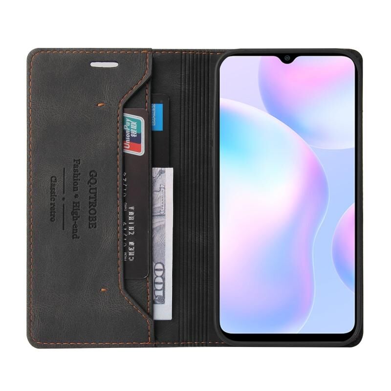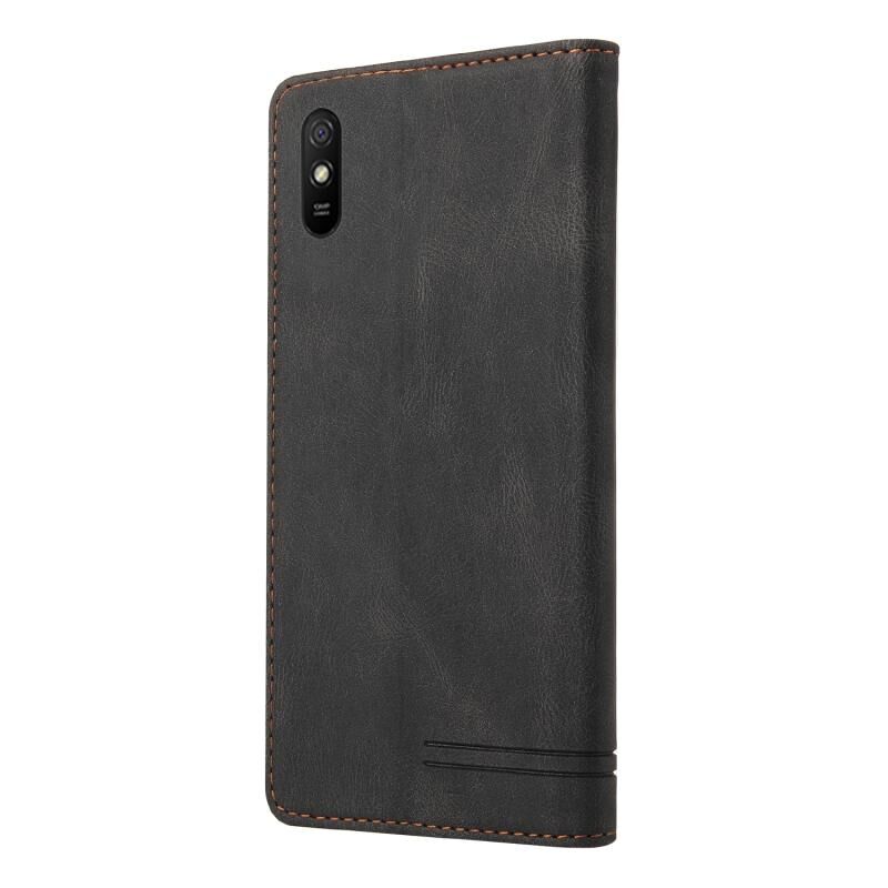 Για Xiaomi Redmi 9A Skin Feel Anti-theft Brush Οριζόντια Flip δερμάτινη θήκη με θήκη & υποδοχές καρτών & πορτοφόλι (Μαύρο)