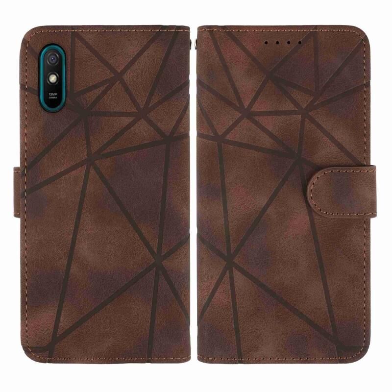 Για Xiaomi Redmi 9A δέρμα αίσθηση γεωμετρικές γραμμές δερμάτινη θήκη τηλεφώνου (καφέ)