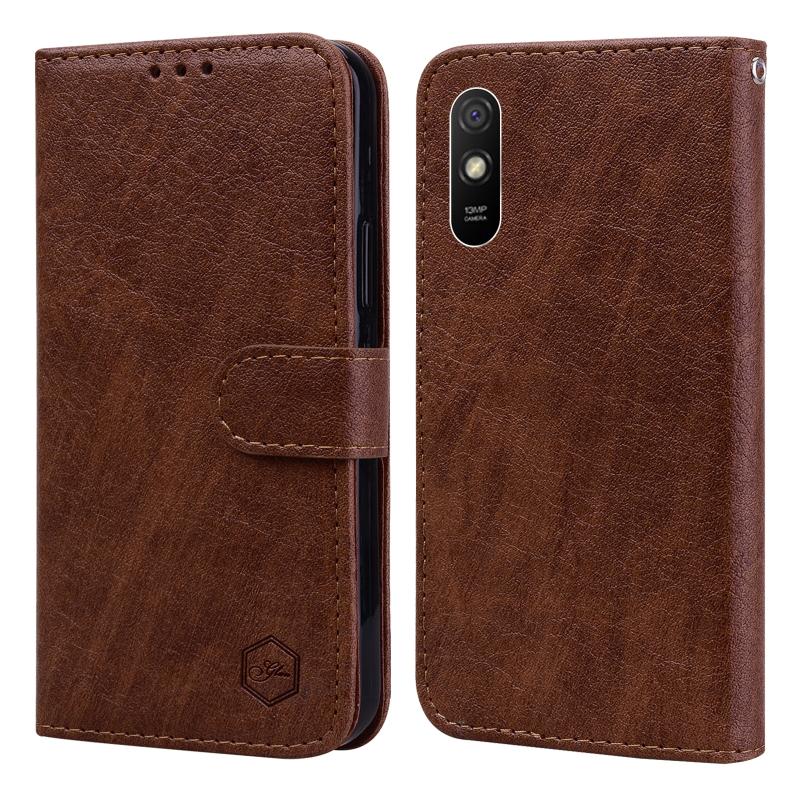 For Xiaomi Redmi 9A Skin Feeling Oil Leather Texture PU + TPU Phone Case(Brown)