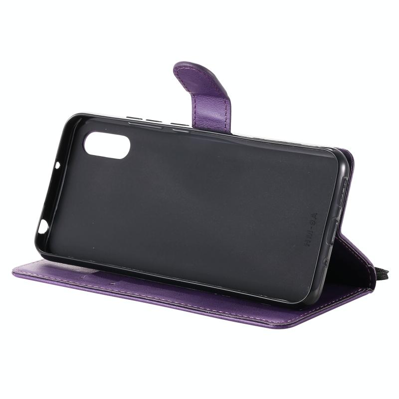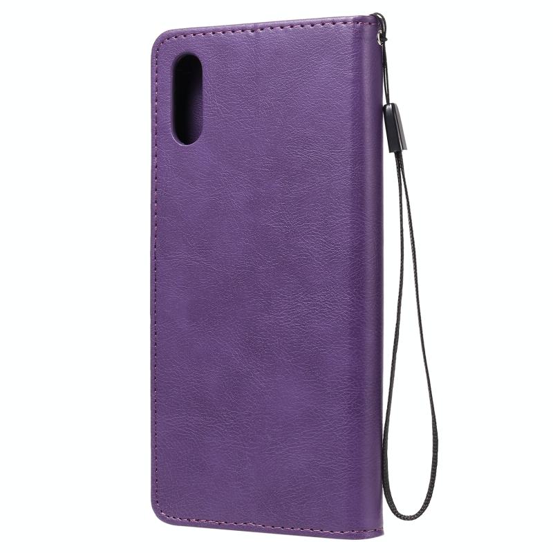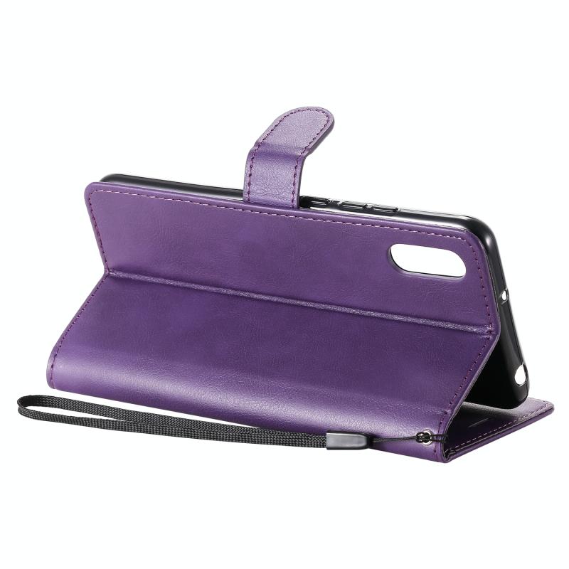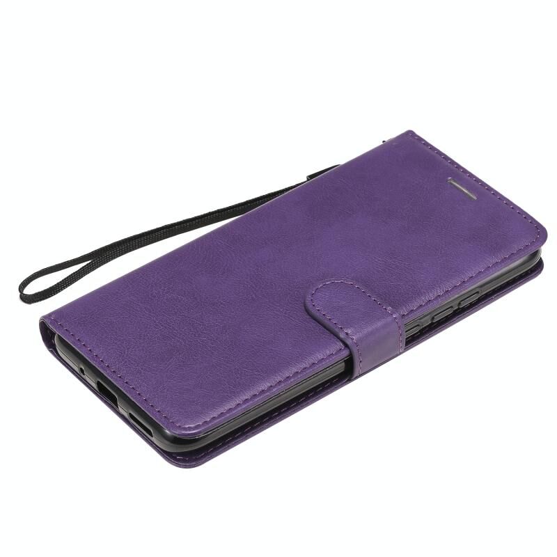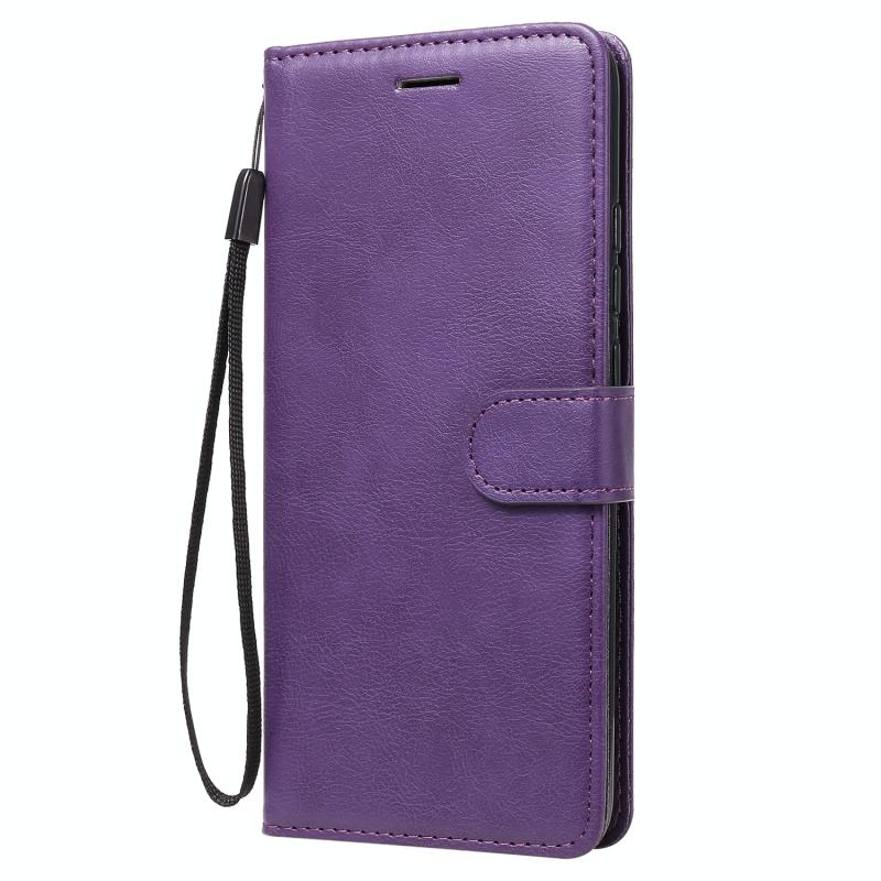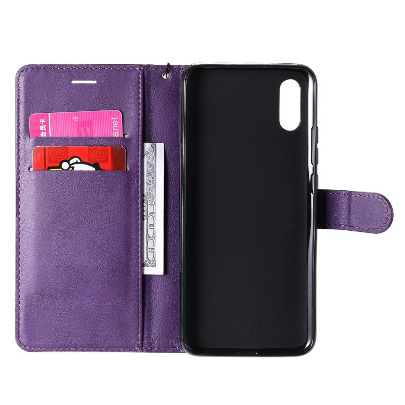 For Xiaomi Redmi 9A Solid Color Horizontal Flip Protective Leather Case with Holder & Card Slots & Wallet & Photo Frame & Lanyard(Purple)