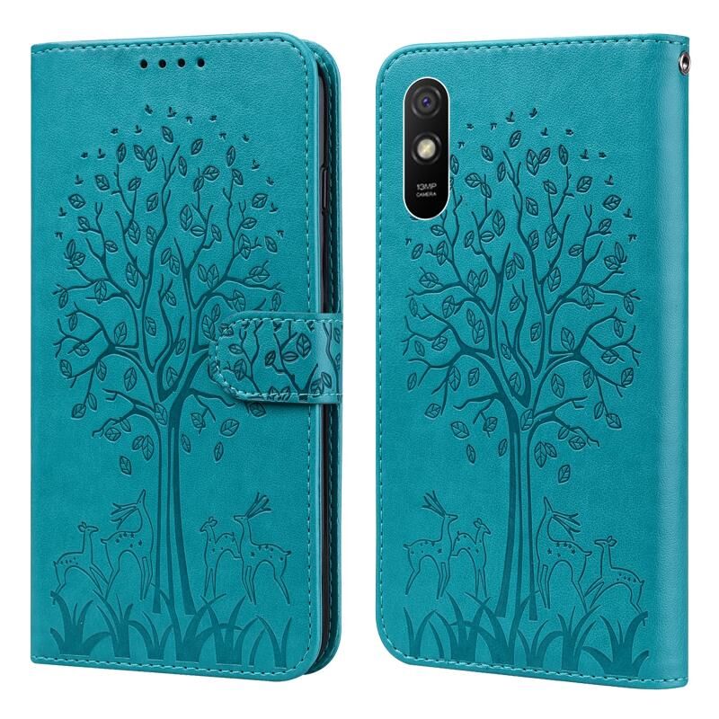 Θήκη τηλεφώνου από δέρμα με σχέδιο δέντρου και ελαφιού, τύπου flip, για Xiaomi Redmi 9A (Μωβ)