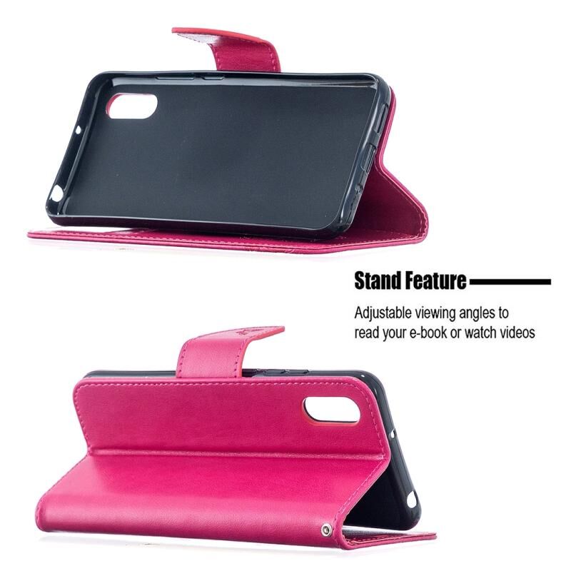 Για Xiaomi Redmi 9A Δερμάτινη θήκη με οριζόντιο άνοιγμα, με ανάγλυφο σχέδιο δύο πεταλούδων, βάση στήριξης, θήκη για κάρτες, πορτοφόλι και λουρί (Χρυσό ροζ)