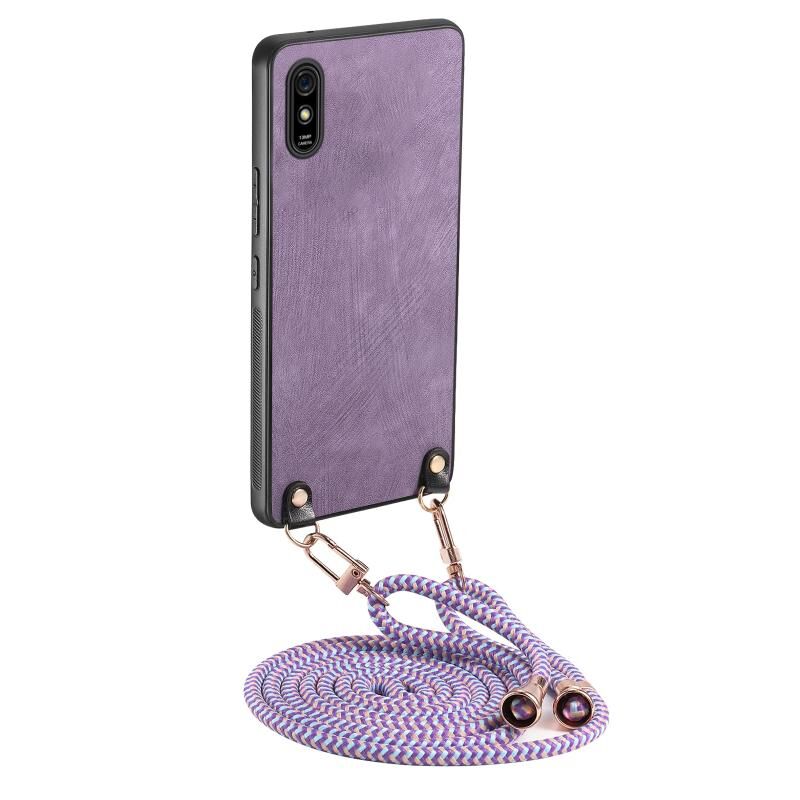 Για Xiaomi Redmi 9A εκλεκτής ποιότητας δέρμα PC πίσω κάλυψη υπόθεση τηλεφώνου με λουράκι σταυρού (μοβ)