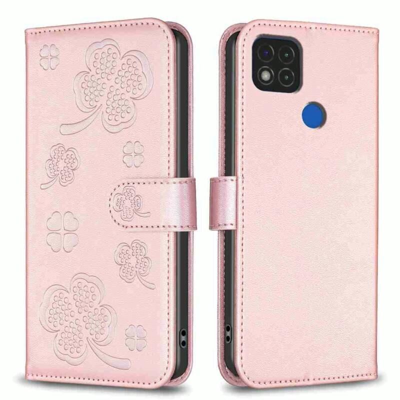 Για Xiaomi Redmi 9C / 10A τετράφυλλο ανάγλυφο δέρμα τηλέφωνο υπόθεση (ροζ)
