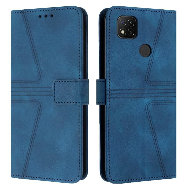 Για Xiaomi Redmi 9C / 10A Τρίγωνο στερεό χρώμα δερμάτινη θήκη τηλεφώνου (μπλε)