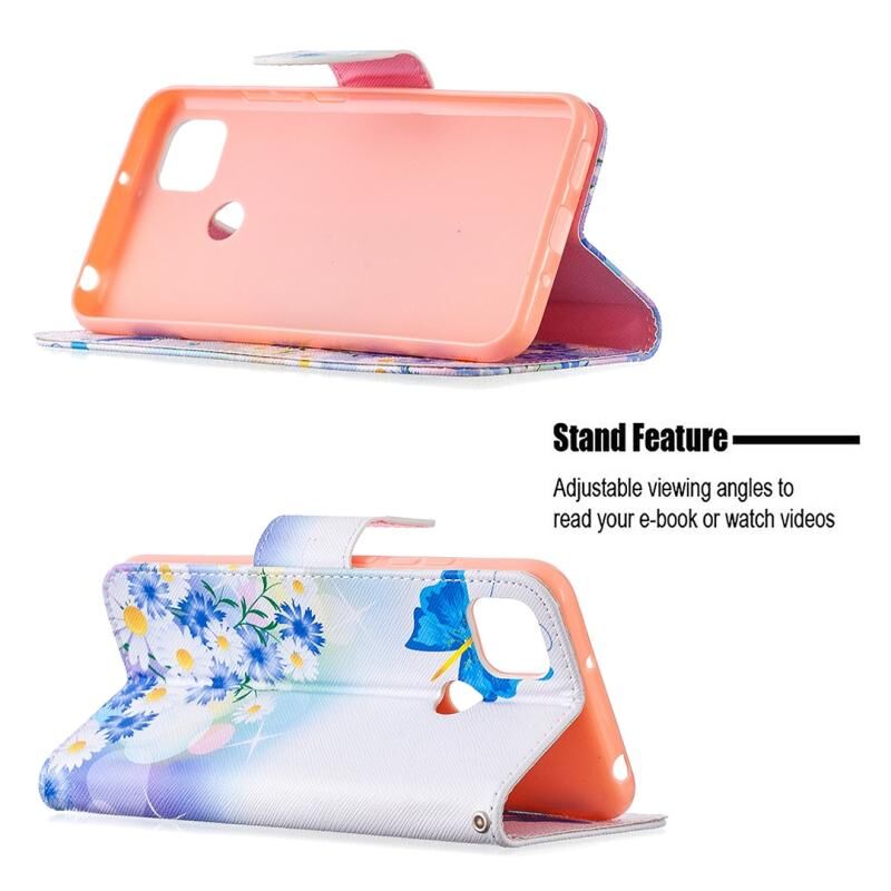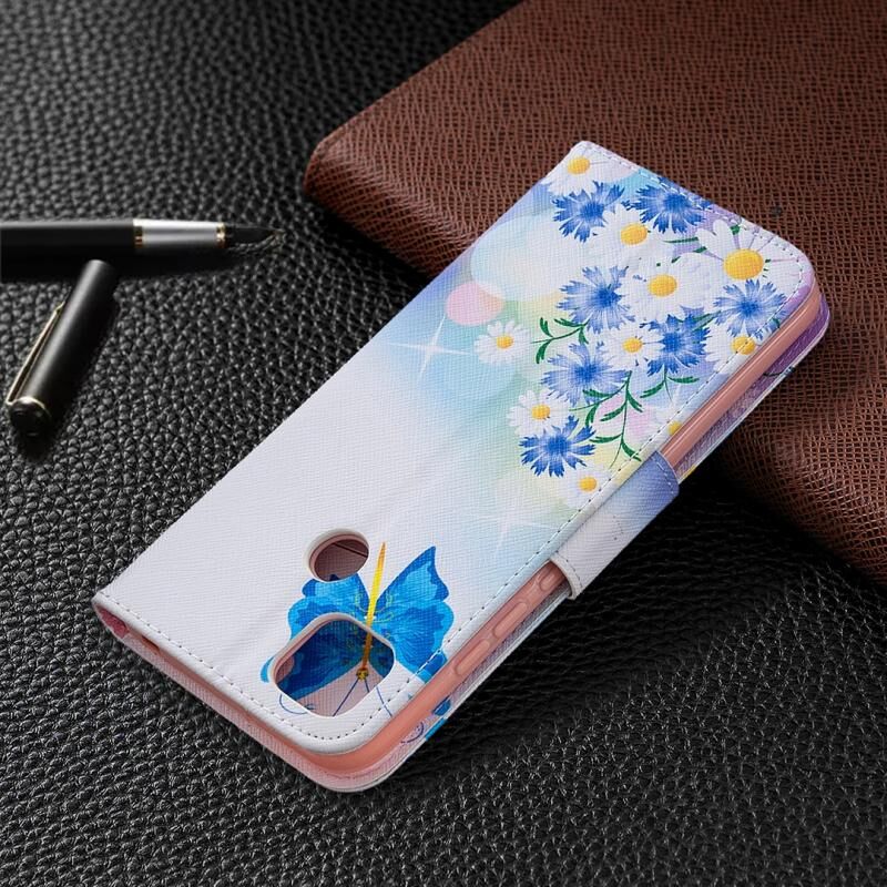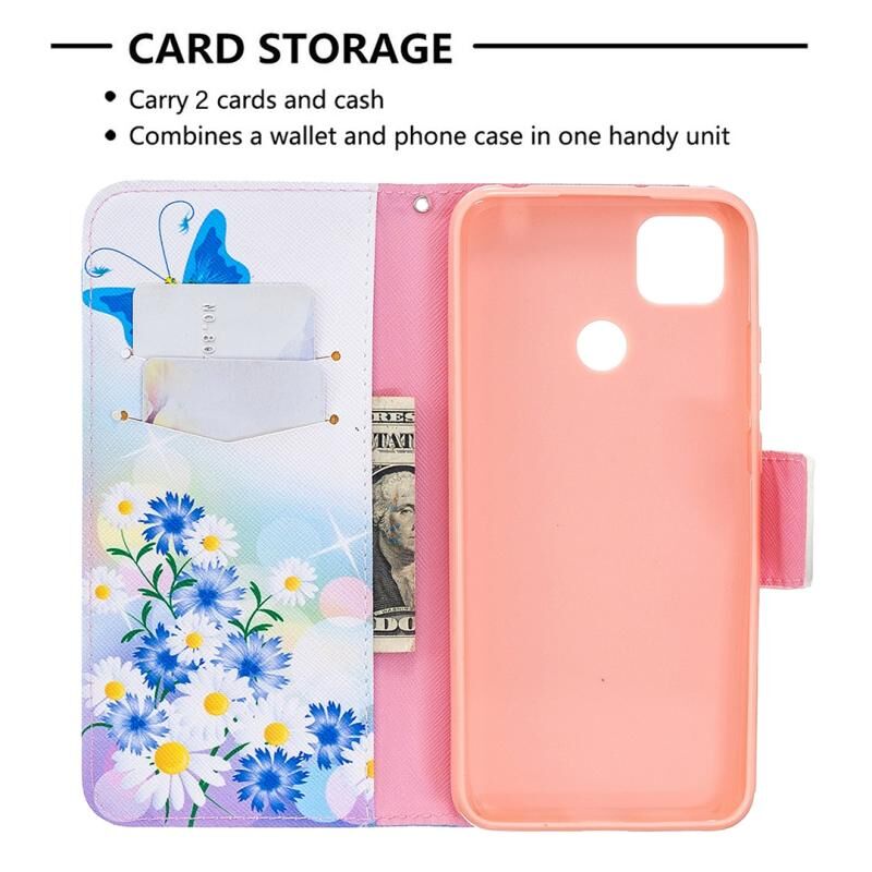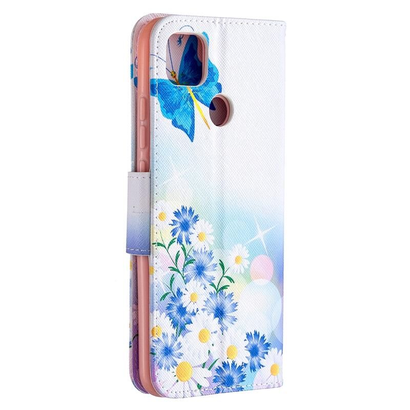 Θήκη δέρματος οριζόντιας αναδίπλωσης με σχέδια ζωγραφικής και χρώματα για Xiaomi Redmi 9C με βάση στήριξης & υποδοχές καρτών & πορτοφόλι (Πεταλούδες Αγάπη Λουλούδι)