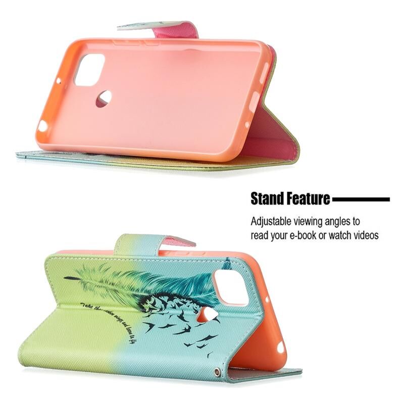 Θήκη δέρματος οριζόντιας αναδίπλωσης με σχέδια ζωγραφικής και χρώματα για Xiaomi Redmi 9C με βάση στήριξης & υποδοχές καρτών & πορτοφόλι (Πουλιά με Φτερά)