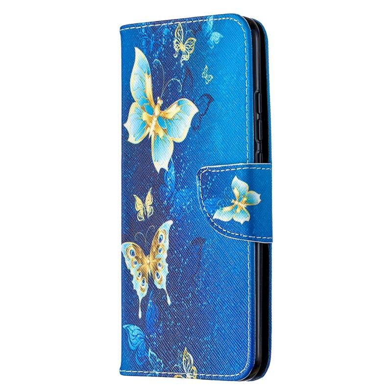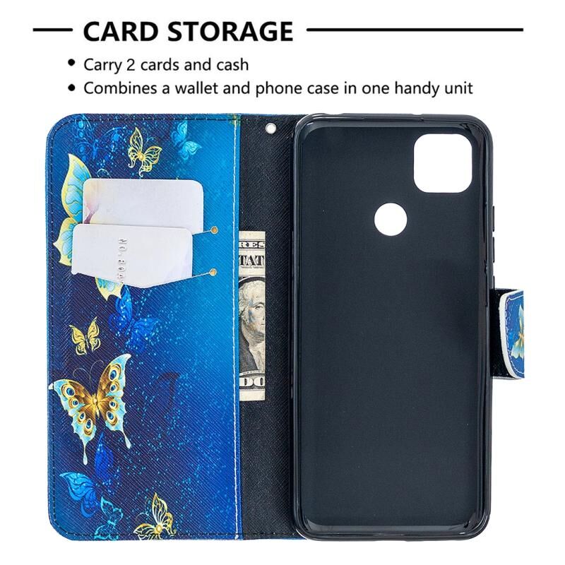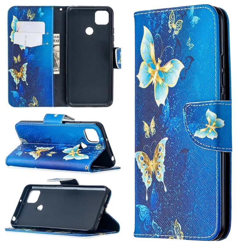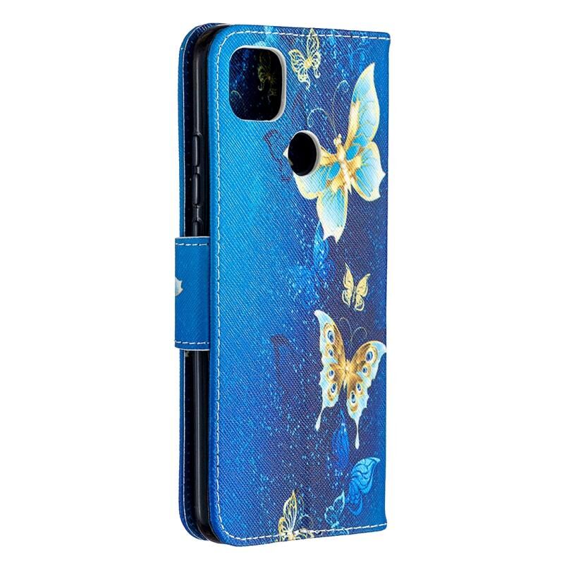 Θήκη δέρματος οριζόντιας αναδίπλωσης με σχέδια ζωγραφικής και χρώματα για Xiaomi Redmi 9C με βάση στήριξης & υποδοχές καρτών & πορτοφόλι (Χρυσή Πεταλούδα)