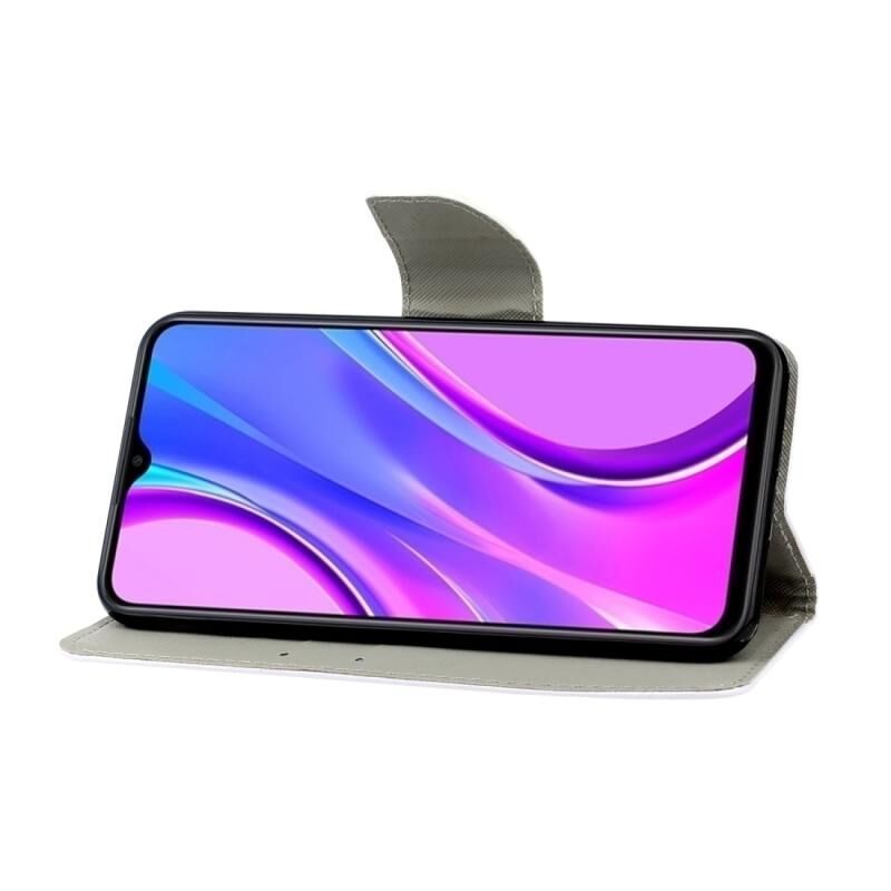 Θήκη δέρματος οριζόντιας αναδίπλωσης με σχέδια ζωγραφικής και χρώματα για Xiaomi Redmi 9C με βάση στήριξης & υποδοχές καρτών & πορτοφόλι (Κόκκινο)