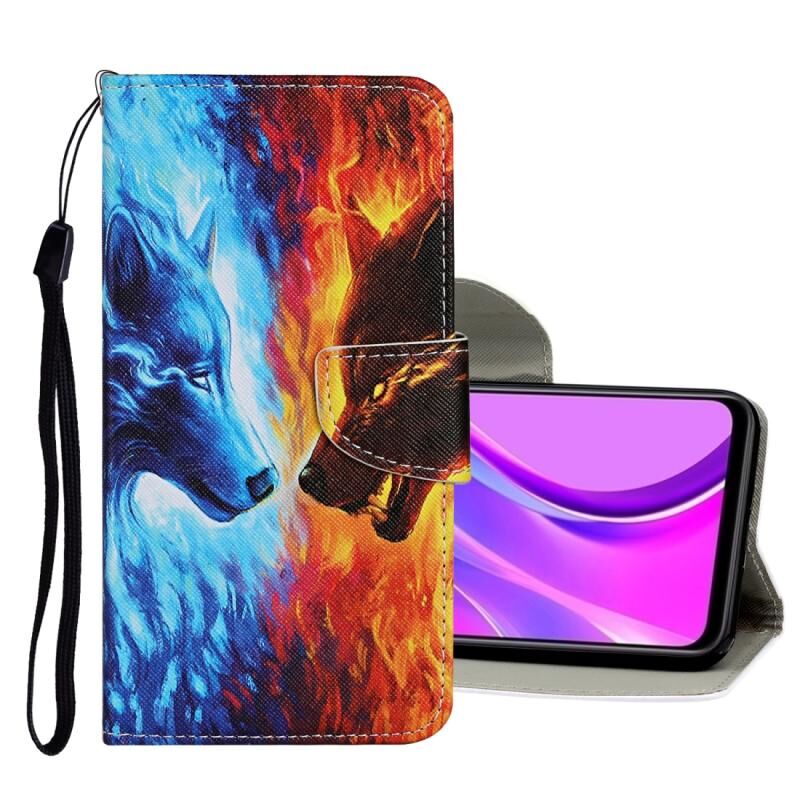 Θήκη δέρματος οριζόντιας αναδίπλωσης με σχέδιο έγχρωμης ζωγραφικής για Xiaomi Redmi 9C με βάση στήριξης & υποδοχές καρτών & πορτοφόλι (Λύκος)