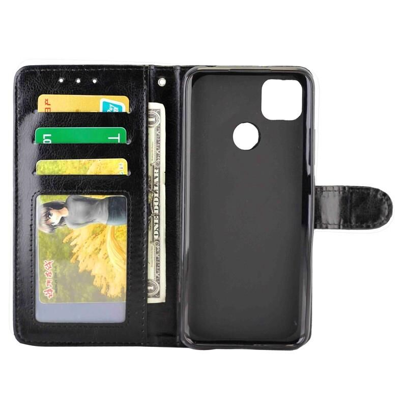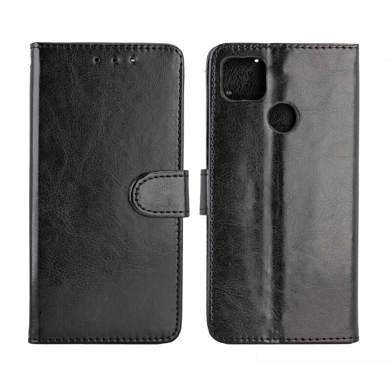 Για Xiaomi Redmi 9C Crazy Horse Υφή δέρμα οριζόντια Flip προστατευτική θήκη με υποδοχή & υποδοχές για κάρτες & πορτοφόλι & πλαίσιο φωτογραφιών (μαύρο)