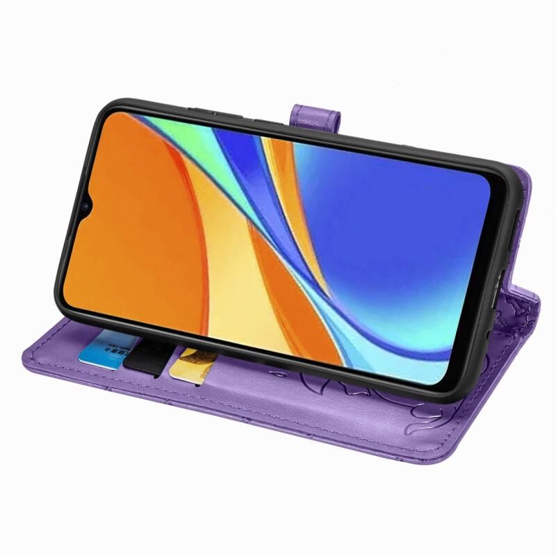 Για Xiaomi Redmi 9C Χαριτωμένη γάτα και σκύλος ανάγλυφη οριζόντια Flip δερμάτινη θήκη με θήκη & υποδοχές καρτών & πορτοφόλι & κορδόνι (μωβ)
