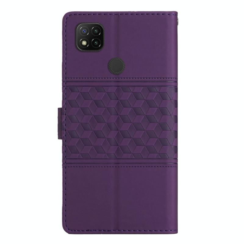 Για Xiaomi Redmi 9C Diamond ανάγλυφο δέρμα αίσθηση δερμάτινη θήκη τηλεφώνου με κορδόνι (μωβ)