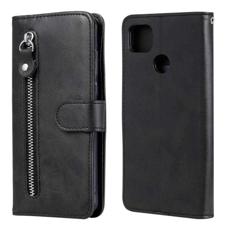 Για Xiaomi Redmi 9C Μόδα μοσχάρι υφή φερμουάρ οριζόντια Flip δερμάτινη θήκη με Stand & υποδοχές για κάρτες & λειτουργία πορτοφόλι (μαύρο)