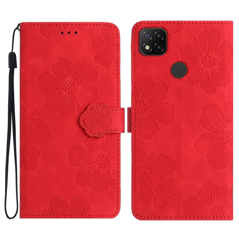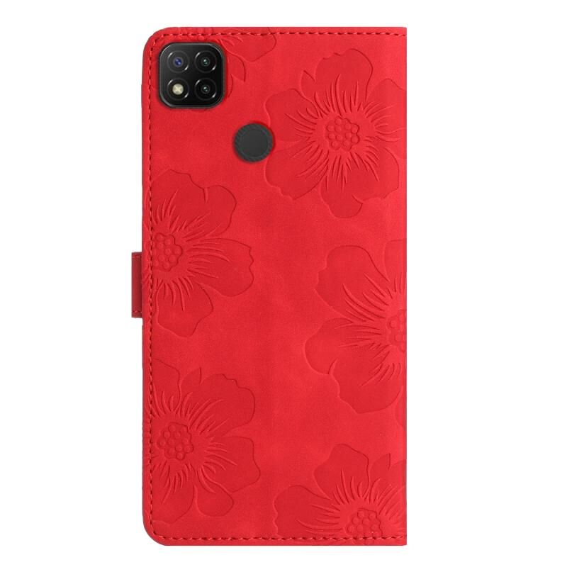 Για Xiaomi Redmi 9C λουλούδι ανάγλυφο μοτίβο δερμάτινη θήκη τηλεφώνου (κόκκινο)