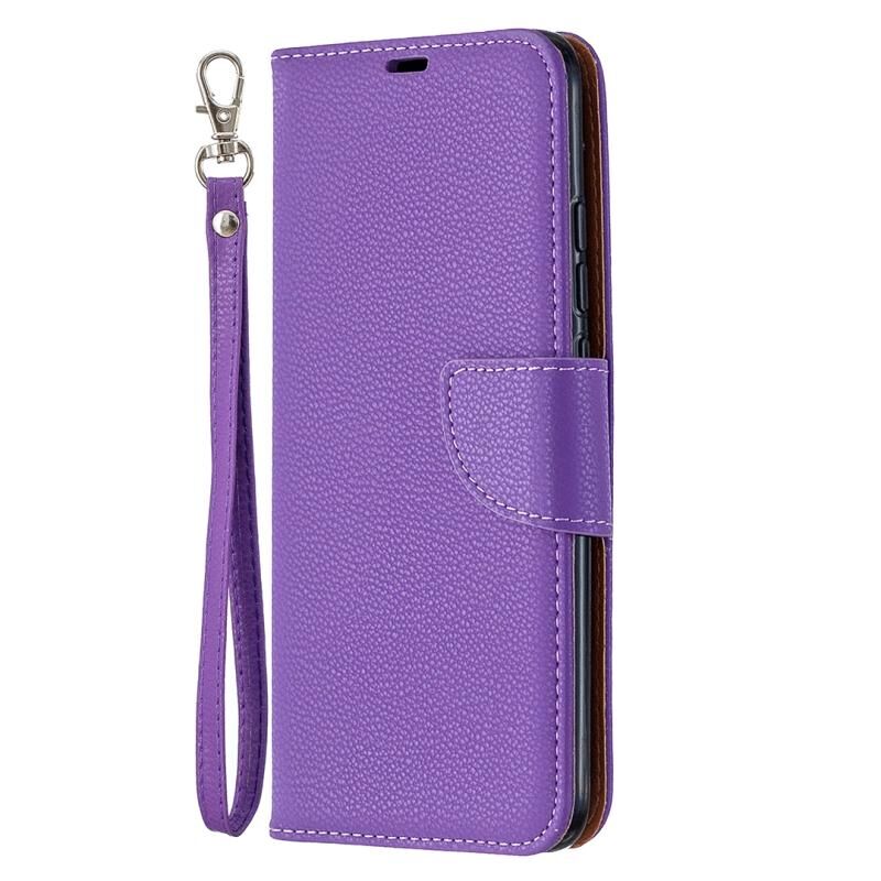 Για Xiaomi Redmi 9C Litchi υφή καθαρό χρώμα οριζόντια Flip PU δέρμα υπόθεση με θήκη & υποδοχές για κάρτες & πορτοφόλι & κορδόνι (μωβ)