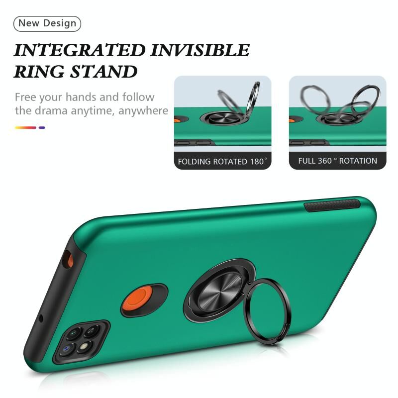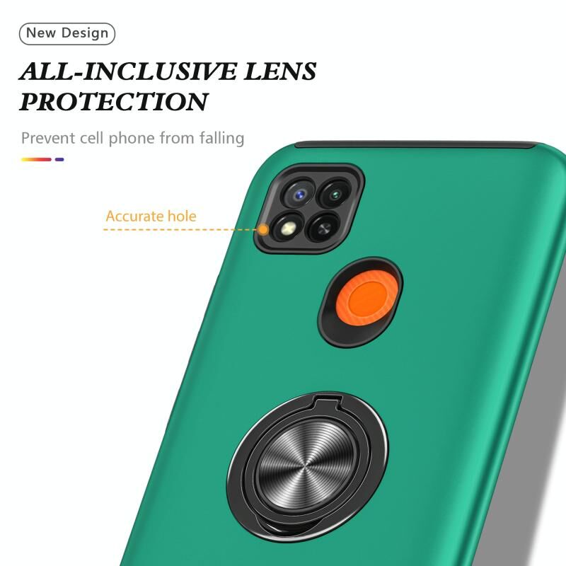 Για Xiaomi Redmi 9C PC + TPU Shockproof μαγνητική προστατευτική θήκη με αόρατο δαχτυλίδι κάτοχος (σκούρο πράσινο)