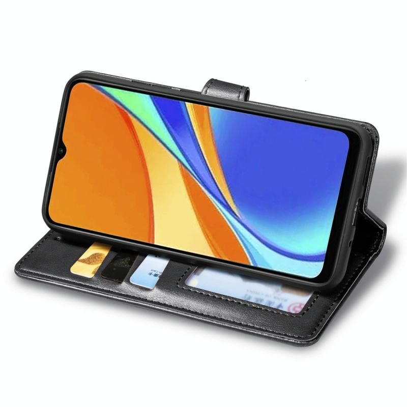 Για Xiaomi Redmi 9C Ρετρό στερεό χρώμα δερμάτινη θήκη τηλεφώνου πόρπη με κορδόνι & πλαίσιο φωτογραφιών & υποδοχή κάρτας & πορτοφόλι & λειτουργία Stand (Μαύρο)