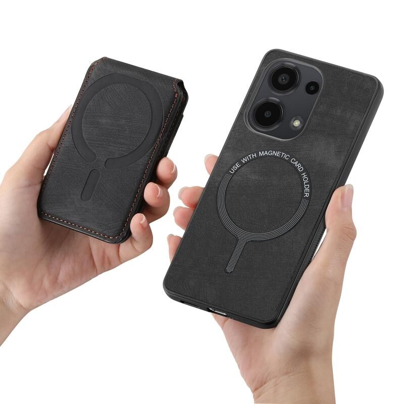 5. Το δερμάτινο πορτοφόλι διαθέτει ισχυρούς ενσωματωμένους μαγνήτες που του επιτρέπουν να κουμπώνει αβίαστα στη θέση του στο πίσω μέρος του τηλεφώνου σας, εύκολο στη χρήση και την αφαίρεση.