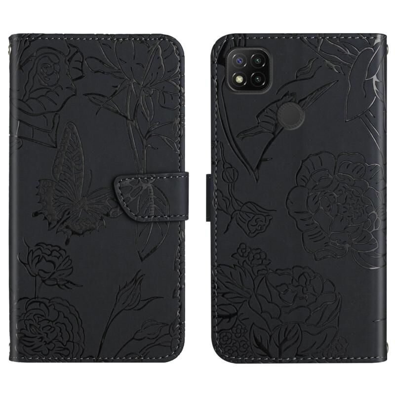 Θήκη τηλεφώνου από δέρμα με ανάγλυφο σχέδιο πεταλούδας και παιώνιας για Xiaomi Blackmi 9C (Κόκκινο)