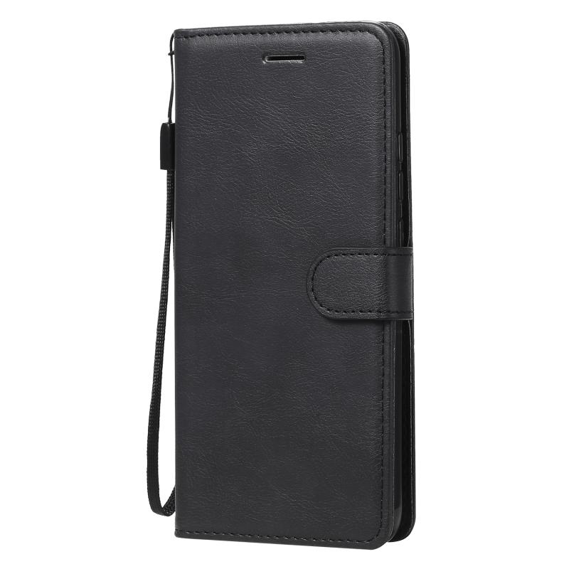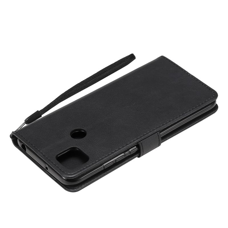 For Xiaomi Redmi 9C Solid Color Horizontal Flip Protective Leather Case with Holder & Card Slots & Wallet & Photo Frame & Lanyard(Black)