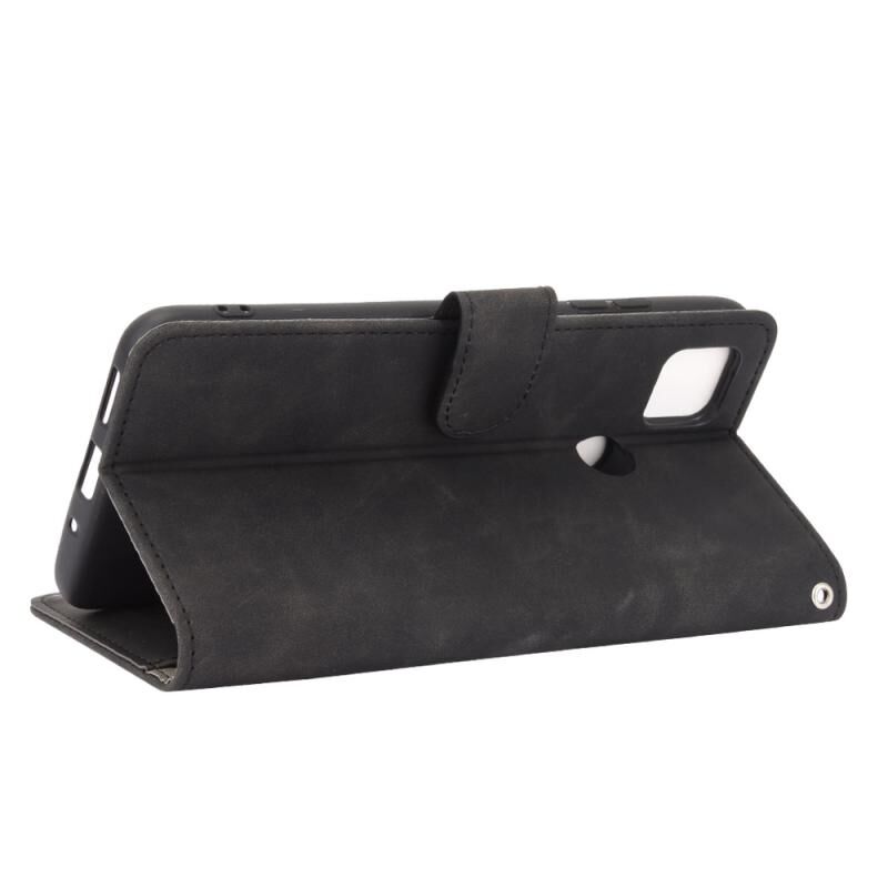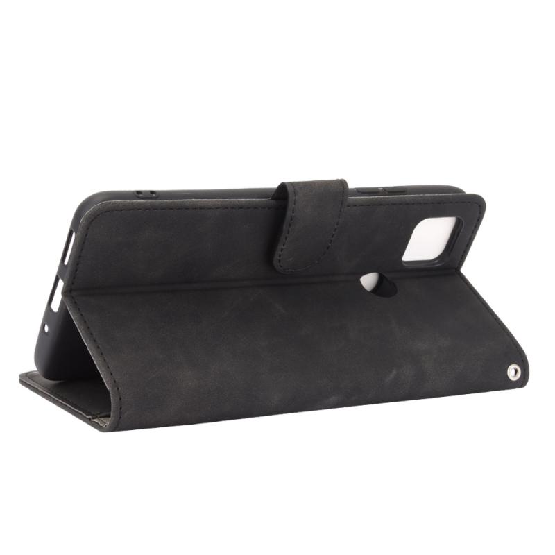 For Xiaomi Redmi 9C Solid Color Skin Feel Magnetic Buckle Horizontal Flip Calf Texture PU Leather Case with Holder & Card Slots & Wallet(Black)