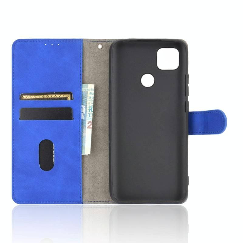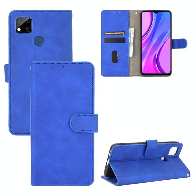 For Xiaomi Redmi 9C Solid Color Skin Feel Magnetic Buckle Horizontal Flip Calf Texture PU Leather Case with Holder & Card Slots & Wallet(Blue)