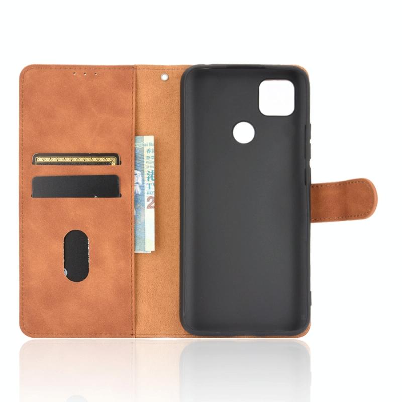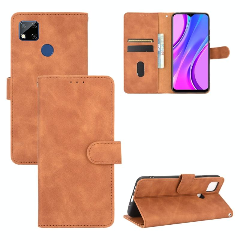 For Xiaomi Redmi 9C Solid Color Skin Feel Magnetic Buckle Horizontal Flip Calf Texture PU Leather Case with Holder & Card Slots & Wallet(Brown)