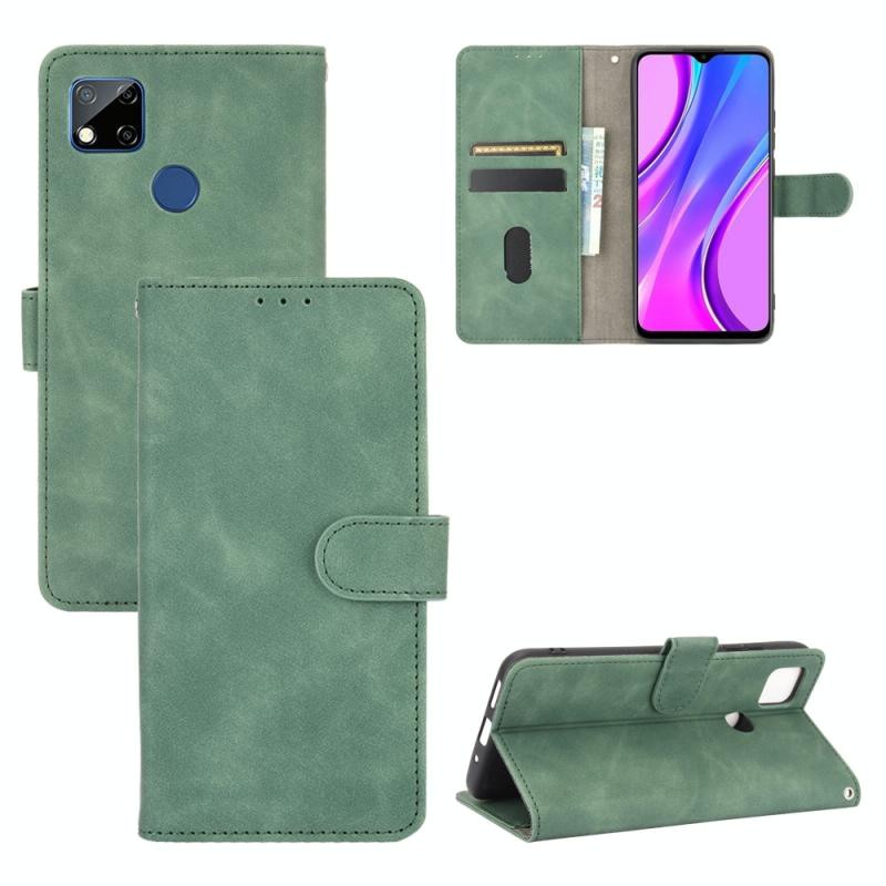 For Xiaomi Redmi 9C Solid Color Skin Feel Magnetic Buckle Horizontal Flip Calf Texture PU Leather Case with Holder & Card Slots & Wallet(Green)