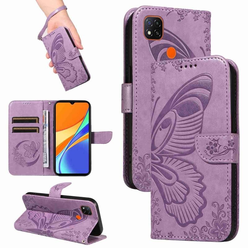 Θήκη τηλεφώνου δερμάτινη με ανάγλυφο σχέδιο πεταλούδας για Xiaomi Redmi 9C (Μπλε)