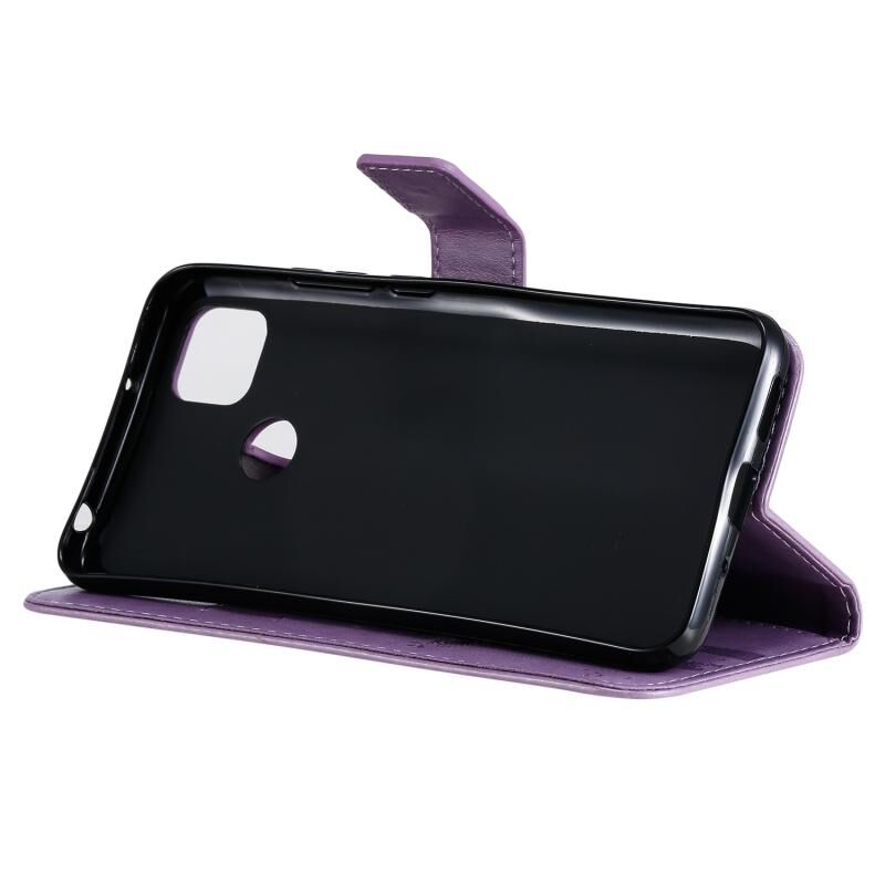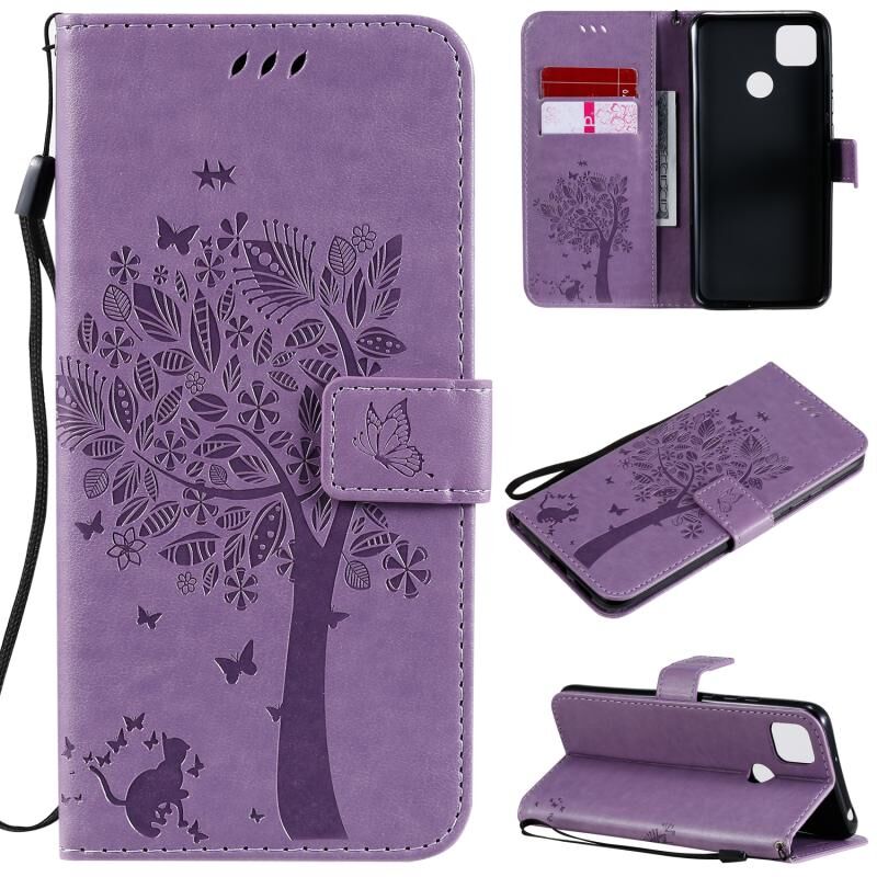 Θήκη για Xiaomi Redmi 9C με σχέδιο Δέντρου & Γάτας, εκτύπωση με πίεση, οριζόντια αναδίπλωση, από δερματίνη PU με βάση στήριξης & θήκες για κάρτες & πορτοφόλι & κορδόνι (Ροζ)