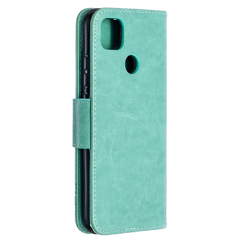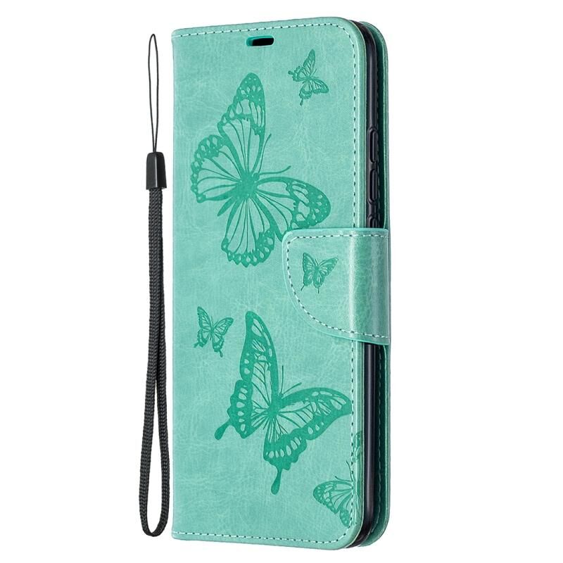Για Xiaomi Redmi 9C Δερμάτινη θήκη με οριζόντιο άνοιγμα, με ανάγλυφο σχέδιο δύο πεταλούδων, βάση στήριξης, θήκη για κάρτες, πορτοφόλι και λουρί (Χρυσό ροζ)