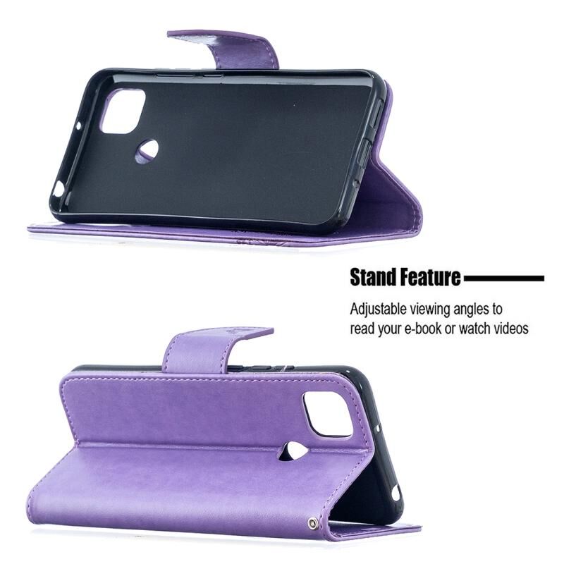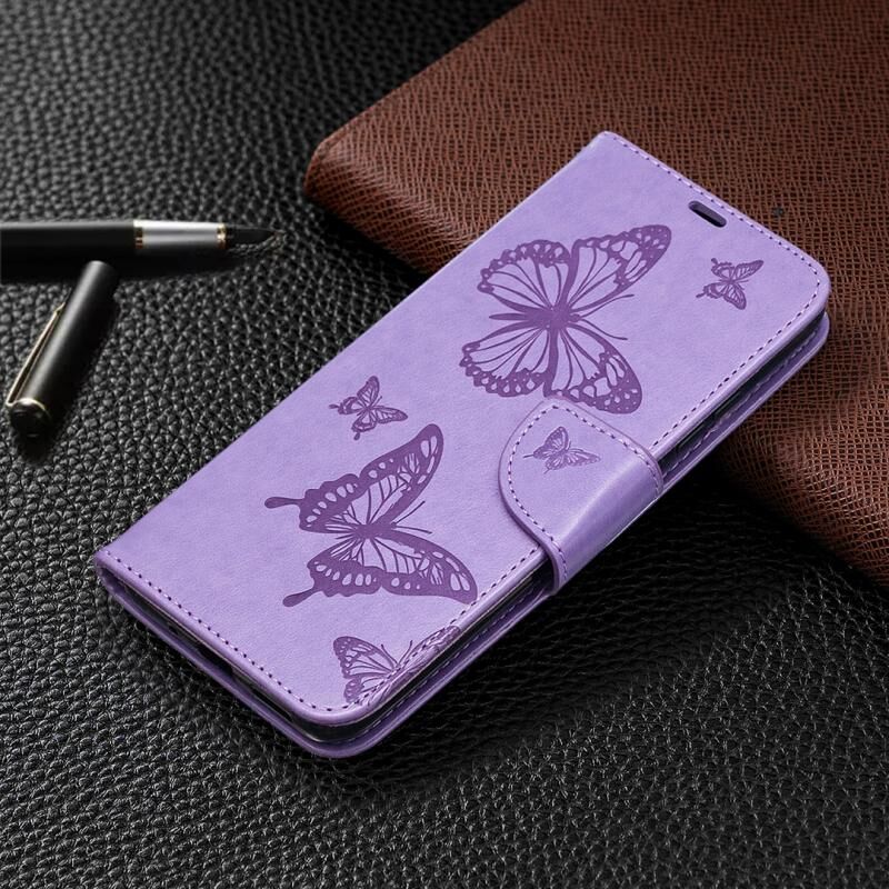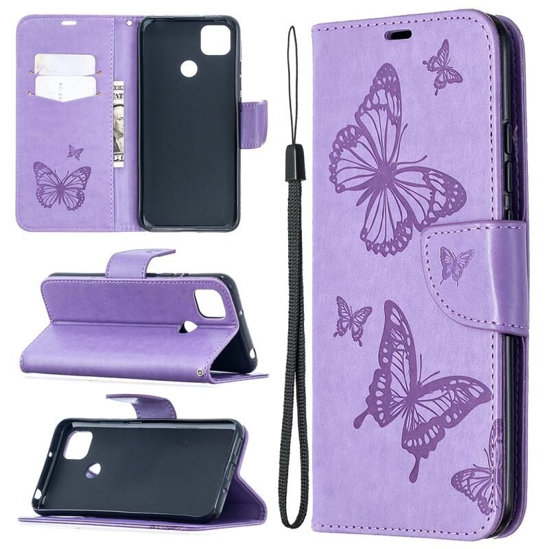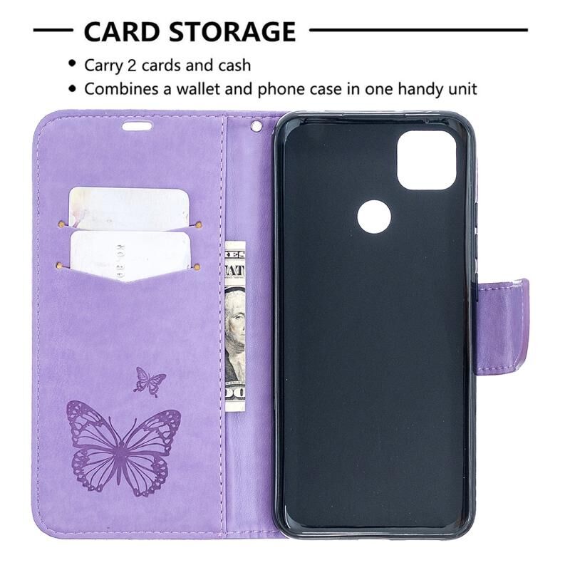 Για Xiaomi Redmi 9C Δερμάτινη θήκη με οριζόντιο άνοιγμα, με ανάγλυφο σχέδιο δύο πεταλούδων, βάση στήριξης, θήκη για κάρτες, πορτοφόλι και λουρί (Χρυσό ροζ)