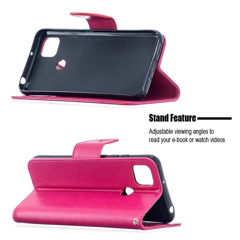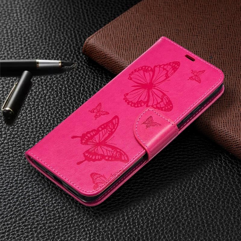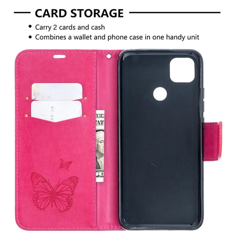 Για Xiaomi Redmi 9C Δερμάτινη θήκη με οριζόντιο άνοιγμα, με ανάγλυφο σχέδιο δύο πεταλούδων, βάση στήριξης, θήκη για κάρτες, πορτοφόλι και λουρί (Χρυσό ροζ)