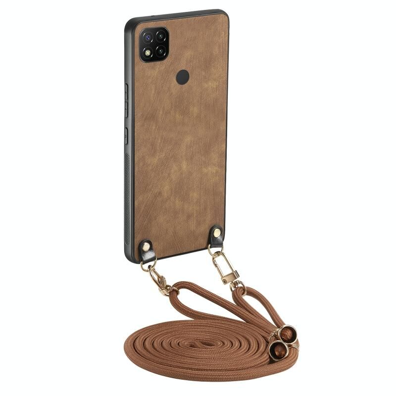 Για Xiaomi Redmi 9C εκλεκτής ποιότητας δέρμα PC πίσω κάλυψη υπόθεση τηλεφώνου με λουράκι σταυρού (καφέ)